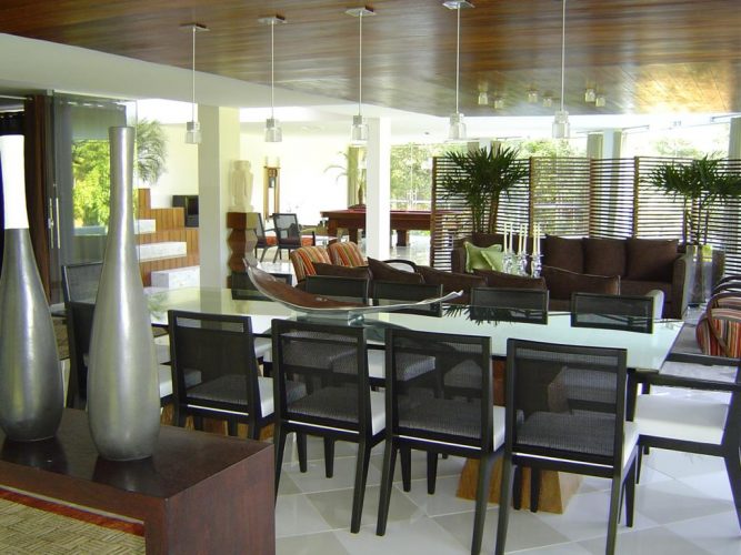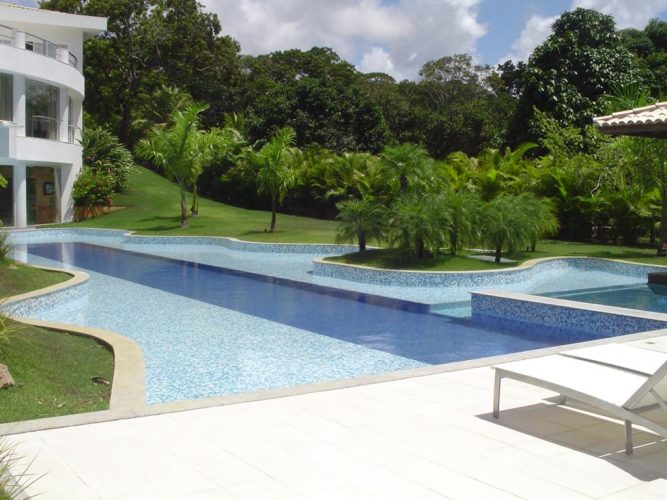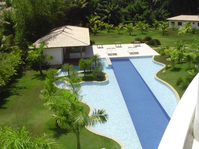 Luxury house for sale Brazil Bahia . Come home to you’re your very own private paradise. Relax and take in the gorgeous views and wake-up to magnificent sunrises. Situated on a luxury gated community only 5,5km from Salvador Airport(SSA) this light and airy beauty has it all! Featuring a custom gourmet kitchen with top of the line stainless steel appliances, custom stone countertops & backsplash, furniture top quality eat-in kitchen area, elegant formal dining room, gorgeous formal living room with a hot tub and waterfall to the swimming pool. On the higher level you will find a huge 110m2 (1184 sq.ft) master bedroom with 2 walk-in closets, hot tub, balcony, cabinetry and air conditioner. There is also 2 separate maids room with private bath. Upstairs features 3 independent lofts with walk-in closets, hot tubs, own kitchen and balcony. Garage for 8 cars. Inside laundry area. Housekeeper’s house with 4 bedrooms. Glass doors to balcony with amazing views. Additionally on this level you will find a large guest bedroom with private bath. Downstairs you will find a fantastic private disco with american bar, bath, sound system and the lights necessaries to make a private party. In outside area you have a kiosk with bath, kitchen, barbecue and sauna. Feels like you are on vacation all year round. Land: 13.500m2. Constructed area: 1500m2 (16.146 sq. ft).